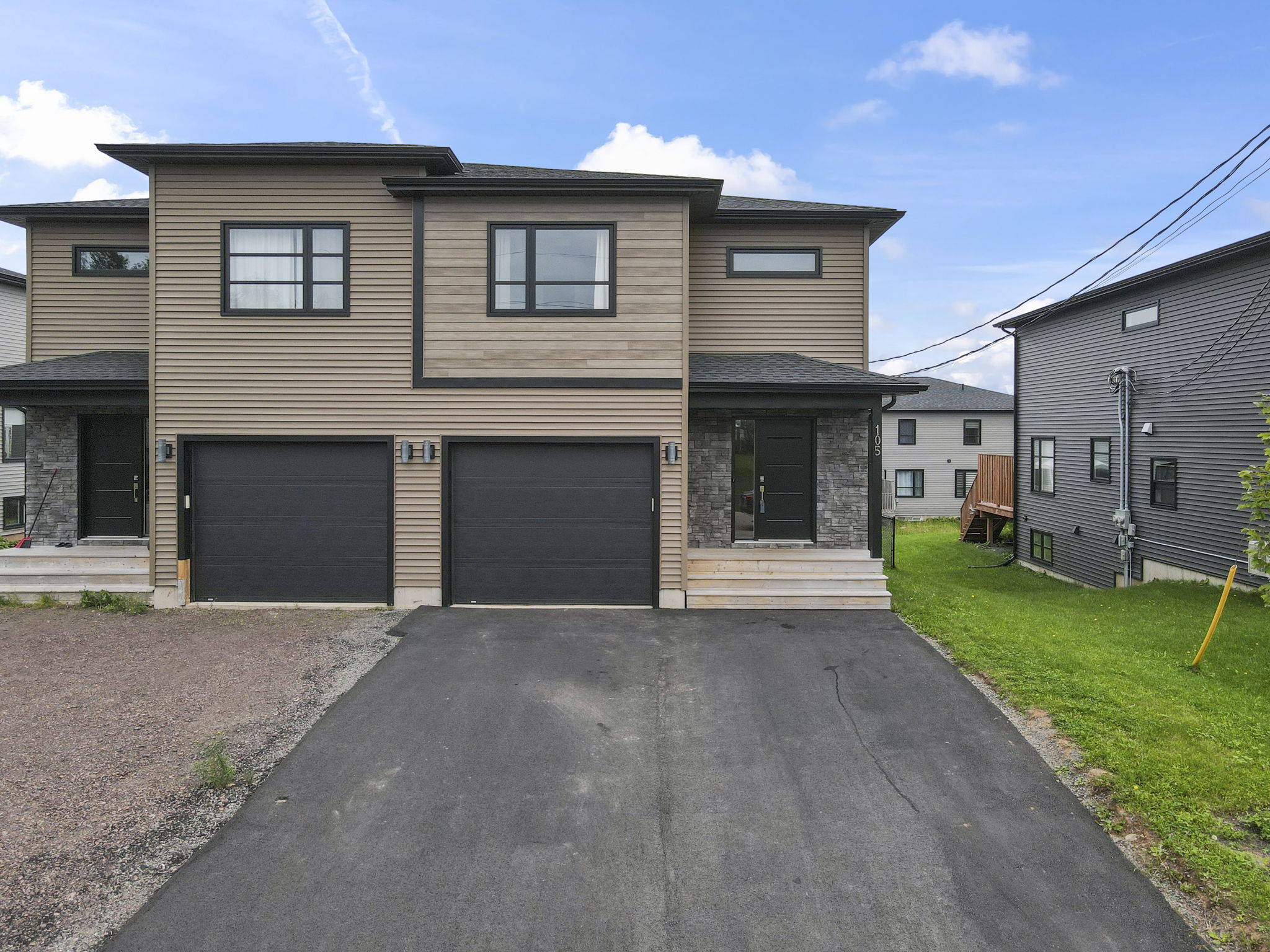 ULTRA EFFICIENT GEOTHERMAL CENTRAL AIR ($184/MONTH) SEMI DETACHED WITH GARAGE - Welcome to 105 Timandra, perfectly located home on a quiet street close to English and French schools in one of the best neighborhoods of Moncton North. This beautiful and modern semi-detached home features a spacious entryway as you walk in and a bright open concept main floor sitting on wood plank tiles. Coming in from the attached garage you will find a half bathroom, your white kitchen cabinets with island and stainless-steel appliances flowing into your dining and living room featuring a stone wall with electric fireplace. Through the modern patio door, you can access your back deck and fenced-in backyard perfect for the kids and/or dogs. The second floor offers a conveniently located laundry room, 2 good size bedrooms, a master with a large walk-in closet and a beautiful modern bathroom offering a large soaker tub, double vanity, and a custom tiled shower. The lower level is unfinished ready for your personal touch. Extra features include an attached garage, Heat Pump, paved driveway and tile flooring throughout the main floor. This is a rare unit in mint condition, get it before it's gone! Have a look at the virtual tour and book your showing now!