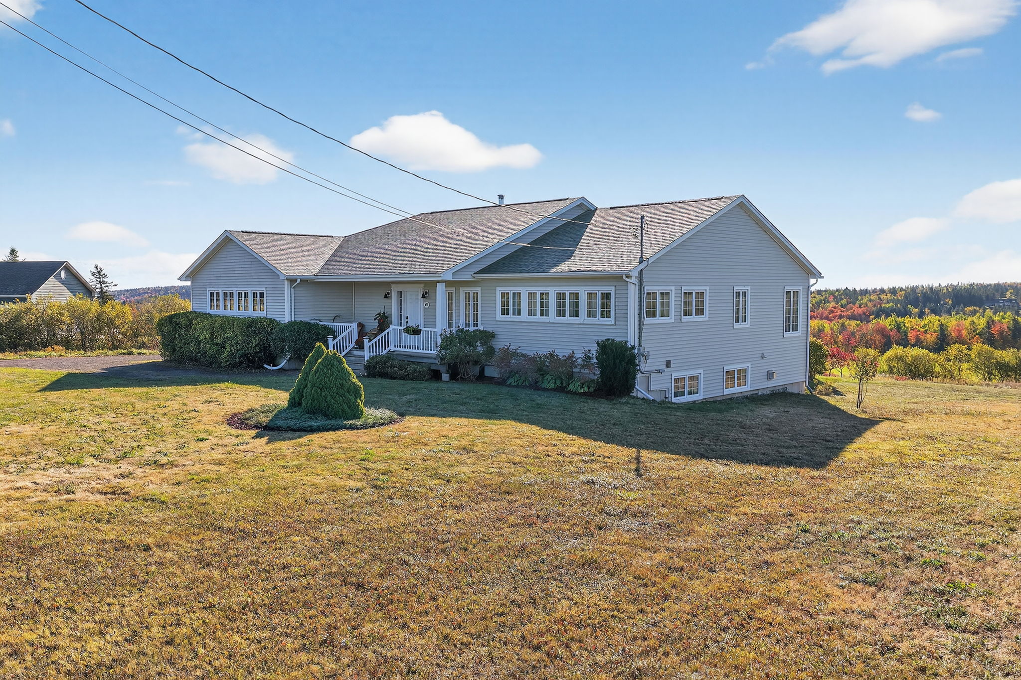 491 Indian Road is Located minutes from Crandall University. This SOUTHERN EXPOSURE, gorgeous home boasts so many wonderful features! Nestled on 1.5 Acres, this CUSTOM built, one owner home, has it all! When you enter, your eyes automatically go to the back of the home to the FLOOR TO CEILING WINDOWS and there it is - that VIEW. It is spectacular! There is a WOOD FIREPLACE in the family room that has a built in wall where you can store and access wood from the garage... no mess! The kitchen has tons of space with crisp white cupboards with frosted windows, GRANITE counter tops, WINE COOLER and PROPANE FIREPLACE. Wainscotting adorns the walls throughout, adding so much texture and personality to this home. Access to the back deck is so easy - bringing the outdoor space inside. There is also an awning and a clothes line hook up - and it won't take long to dry the clothes - the breeze in the summer makes it feel like heaven! The main level is completed with a dining room, office/sitting area and WALL to WALL WINDOWS in the Primary suite - your own little oasis. The laundry area is also included in the walk in closet - making it so easy for you! Your WALK-OUT Basement is finished with a large family room and another propane fireplace. TWO BEDROOMS and ONE BR with SAUNA and oversized storage area make this a perfect spot for guests or family members. NEW ROOF 2024. The garage holds 3 cars and has 10' ceilings.