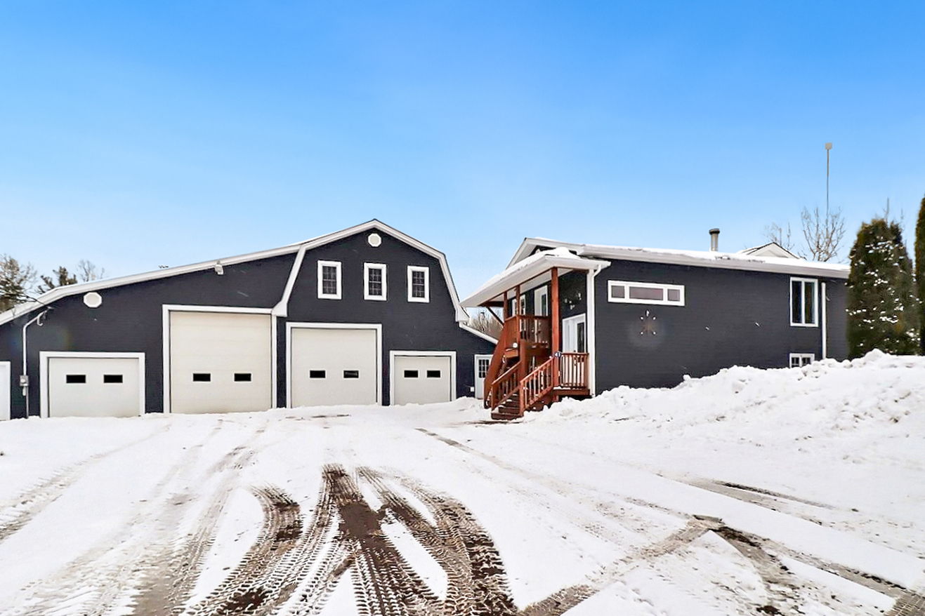 A very unique property with lots to offer. This split entry home is perfect for a large family, the spacious mudroom leads you into the eat-in kitchen with access to the rear facing sunroom that you can enjoy year around. Off of the kitchen is a formal dining area but could be used as a living room if you prefer a more open floor plan. From there you will find two bedrooms and down the hall a family bathroom, primary bedroom with walk-in closet, main floor laundry as well as a living room, 4th bedroom and another bathroom. The lower level can be accessed from the mudroom or by a separate entrance if you wish to use this level as an in-law suite. It hosts a craft room and office that could be used as bedrooms if needed, a kitchenette with washer and dryer hook up, 2 bedrooms, family room and bathroom. For those who saw the shop and that is why you are here, this is the perfect set up for a business, already on a separate meter with a 200 amp panel the garage measures 73'x45', 4 bays, 1 with 17' ceiling and 14' door, concrete floors, wood furnace, heated office and walk up loft. 2018 home renovations include new windows, doors, siding, eavestroughs, wood stove, 3 mini splits, decks, new side entry and sunroom.