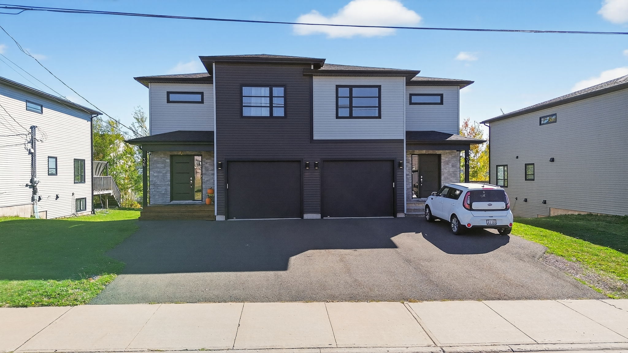 Modern Semi-Detached Home with Income Potential & Geothermal Heating. Welcome to this stunning modern semi-detached home that combines style, space, and smart living. Located in a desirable neighborhood, this beautifully maintained property offers exceptional features including a geothermal heat pump for energy-efficient comfort year-round. Step inside to a large foyer that leads into an inviting open-concept main level. The spacious family room with a cozy fireplace, dining area, and modern kitchen with sleek finishes and stainless steel appliances (fridge and stove purchased in 2023) create the perfect setting for both everyday living and entertaining. A convenient half bath completes the main floor. Upstairs, youll find three generously sized bedrooms, including a primary retreat. The spa-inspired bathroom features a stand-alone soaker tub, tiled walk-in shower, and double vanity, your own private oasis. A separate laundry room adds function and convenience. The finished basement offers a separate side entrance, opening up the possibility for an income-generating suite or in-law living. With a large bedroom, full bathroom, and spacious family room, this lower level provides flexibility and value. Outside, enjoy a fully fenced backyard, perfect for pets, children, or private outdoor living. The yard is lined with mature trees, offering privacy in a peaceful natural setting. This home is move-in ready and full of potential, ideal for families, professionals, or investors.
