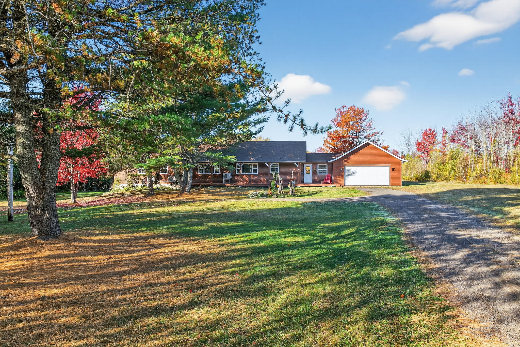 STUNNING LOG-STYLE HOME NESTLED ON A GORGEOUS PRIVATE 5.5 ACRE LOT,OFFERING THE PERFECT BLEND OF RUSTIC CHARM AND MODERN COMFORT.A peaceful walk down a private trail leads you to 198 feet of serene water frontage,ideal for enjoying natures tranquility with kayaking or canoeing or exploring exciting business opportunities such as B&B domes or cozy rental cabins.This well-maintained home features 1770 square feet of easy main floor living,with two spacious bedrooms and two full baths .Upon entry,you're welcomed into a large mudroom with access to the double-car garage and a screened in sunroom,perfect for soaking in the quiet beauty of the surroundings.The kitchen and dining area open into a generous living room with ample space for a home office.The primary suite is a true retreat,showcasing a custom rustic headboard,walk in closet and fully renovated ensuite including a luxurious walk-in shower and spa bath valued at $20,000.A second bedroom, full bath,laundry and access to the back deck are conveniently located on the main level.Downstairs,the unfinished basement offers potential for additional living space tailored to your needs and an additional single garage currently being used as a workshop- ideal for hobbies,storage or housing your outdoor adventure gear.This property is a rare opportunity to embrace peaceful living or launch your next hospitality venture in a truly magical setting.FRESHLY STAINED EXTERIOR,SUNROOM ROOF,WATER SOFTENER AND 3 MINI SPLITS RECENTLY DONE